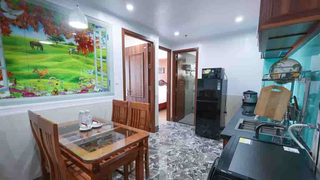 - Phòng bếp tiện nghi (tủ lạnh, máy giặt, máy hút mùi, lò vi sóng, nồi cơm điện, bình siêu tốc, chén, đũa..)
