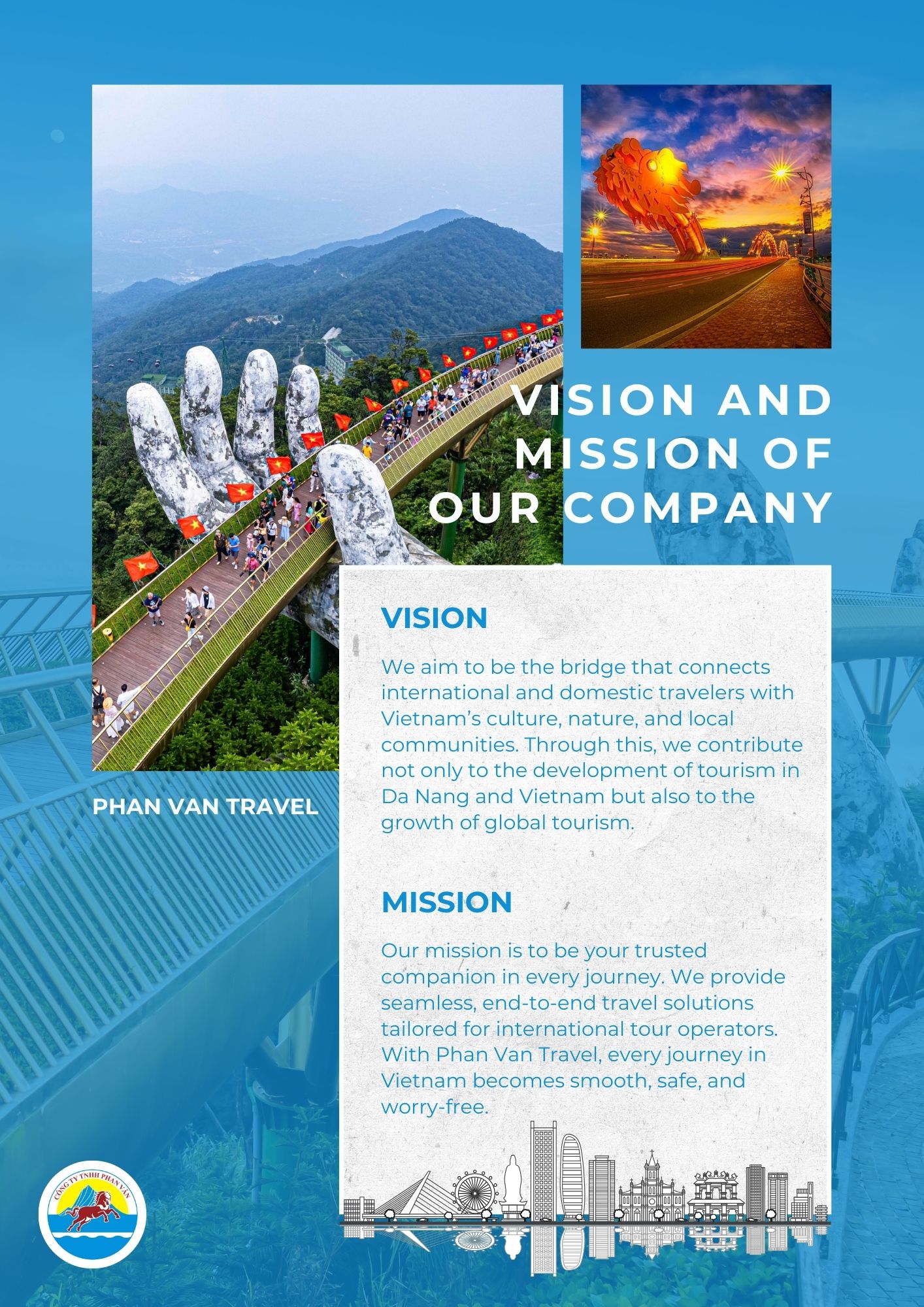 Beyond the goal of becoming a leading Destination Management Company (DMC) in Vietnam, Phan Van Travel aspires to create authentic travel experiences. We aim to be the bridge that connects international and domestic travelers with Vietnam’s culture, nature, and local communities. Through this, we contribute not only to the development of tourism in Da Nang and Vietnam but also to the growth of global tourism.