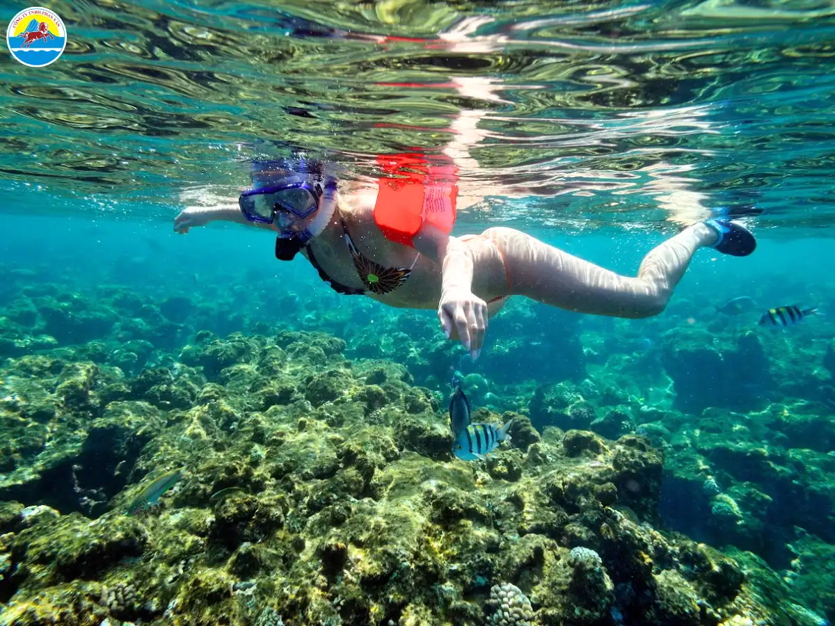 Trải nghiệm: Thử thách lặn ngắm san hô bằng ống thở (snorkeling) là trải nghiệm đỉnh cao tại đây. Với tầm nhìn xuyên thấu xuống tận đáy, bạn sẽ được hòa mình vào thế giới đại dương đầy màu sắc, chiêm ngưỡng "vườn cổ tích" san hô sống động.