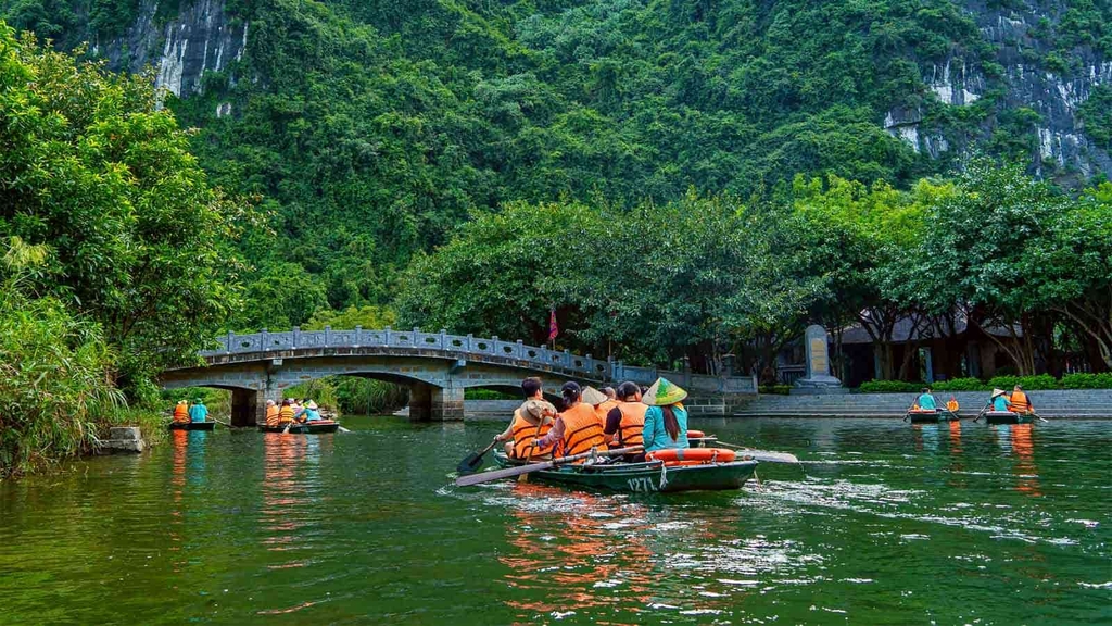 Sáng: Qúy khách dùng điểm tâm sáng tại khách sạn, làm thủ tục trả phòng, xe và hướng dẫn viên đón và đưa Quý khách tham quan KDL Tràng An – Ninh Bình là một vùng non nước, mây trời hoà quyện. Đáy nước trong xanh soi bóng những vách núi đá trùng điệp. Nơi đây có tới 31 hồ, đầm nước được nối thông bởi 48 hang, động đã được phát hiện trong đó có những hang xuyên thủy dài 2km như hang Địa Linh, hang Sinh Dược, hang Mây…