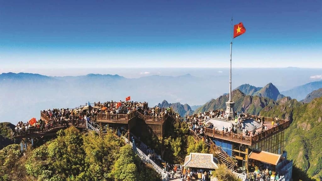 Chinh phục đỉnh Fansipan bằng hệ thống cáp treo lớn và hiện đại nhất Thế Giới hiện này (1 cabin có thể ngồi từ 34-35 người) Tới đỉnh Fansipan quý khách thưởng thức cảm giác đứng trên mây, ngắm nhìn thị trấn Sapa, sau đó tiếp tục leo 639 bậc để tận mắt thấy cột mộc Fansipan độ cao 3.143m nơi được coi là “nóc nhà Đông Dương”.