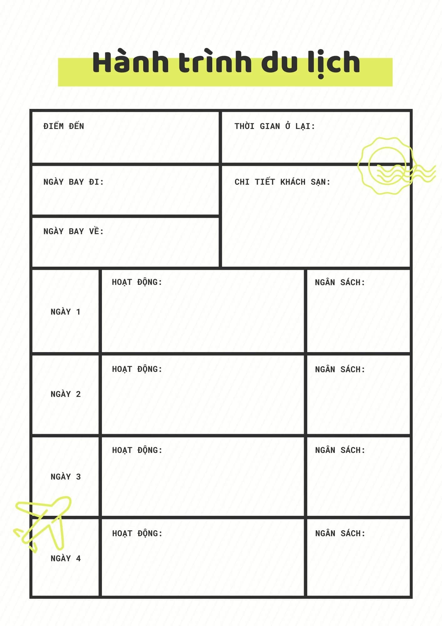 Một kế hoạch đầy đủ thông tin giúp chuyến đi của bạn diễn ra thuận lợi và trơn tru từ A đến Z. Chú ý ghi chú lại những địa điểm phải đến, hoạt động giải trí muốn tham gia, món ăn nổi tiếng nhất định phải thử.