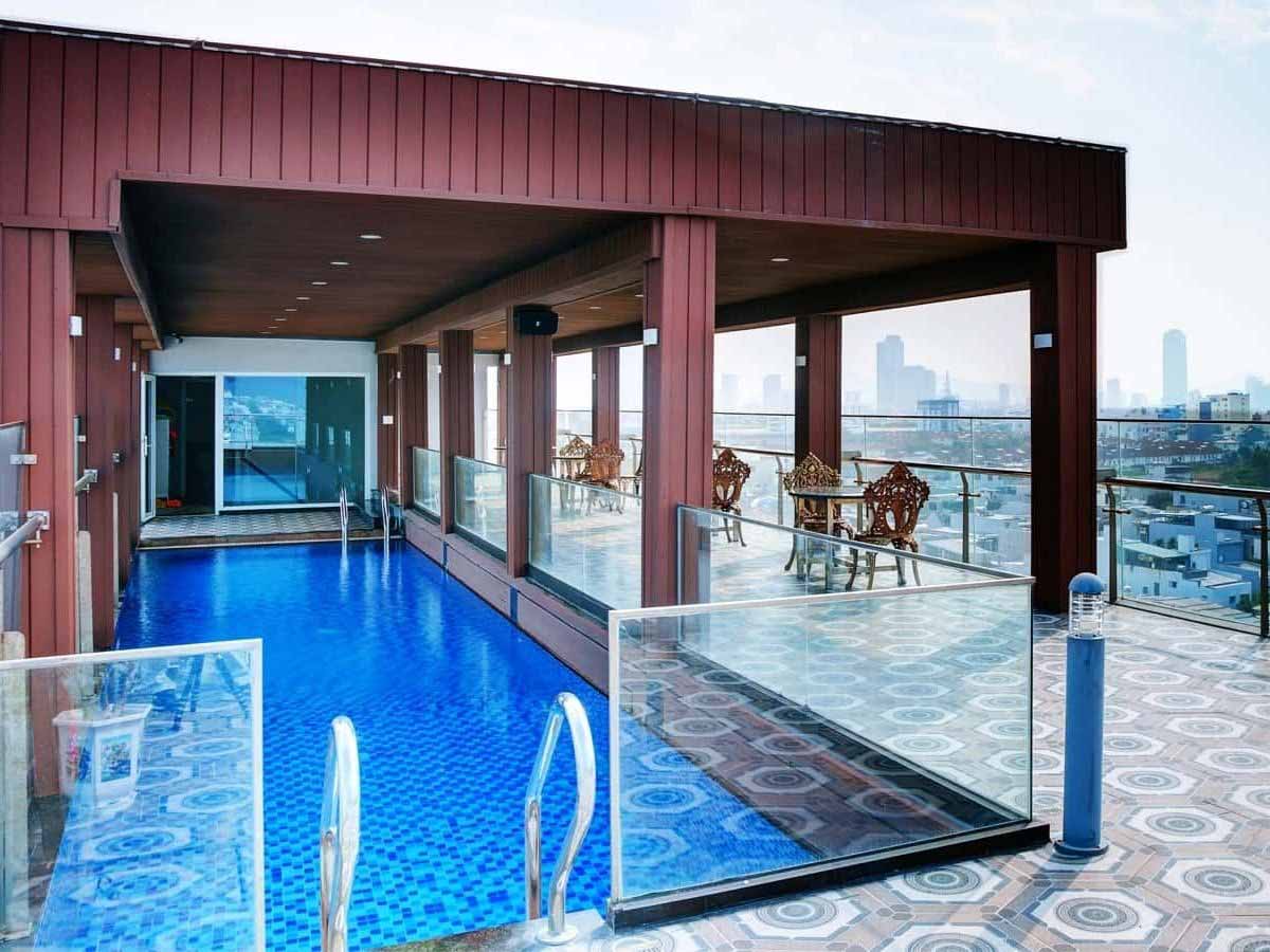 Hồ bơi trên tầng thượng với view toàn cảnh thành phố và biển