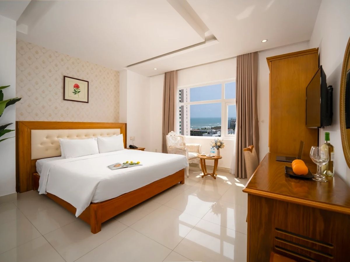 Khách sạn cung cấp các loại phòng cao cấp như Superior Double King (800.000 VNĐ/đêm), Superior Twin (800.000 VNĐ/đêm), Deluxe King (950.000 VNĐ/đêm), Deluxe Queen (950.000 VNĐ/đêm), Superior Triple (950.000 VNĐ/đêm), Deluxe Triple Ocean View (1.100.000 VNĐ/đêm) và Luxury Apartment (1.500.000 VNĐ/đêm).