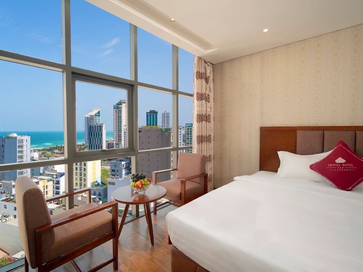 Crystal Hotel mang đến trải nghiệm nghỉ dưỡng đẳng cấp với hệ thống 60 phòng nghỉ sang trọng, hướng phố hoặc biển. Các phòng tại khách sạn 3 sao tại Đà Nẵng Gần biển được thiết kế hiện đại, kết hợp với tiện nghi như phòng gym và hồ bơi.