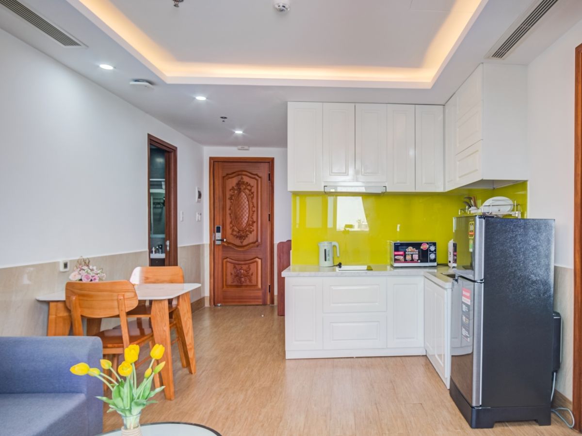 Điểm nhấn là khu bếp tiện nghi với đầy đủ dụng cụ nấu nướng, bát đĩa và tủ lạnh, lý tưởng cho những ai yêu thích tự chuẩn bị bữa ăn. Không gian bếp được bố trí thông minh, giúp bạn dễ dàng chế biến món ăn yêu thích. Giá phòng chỉ từ 300.000 đến 400.000 VND mỗi đêm mang đến trải nghiệm đáng giá.