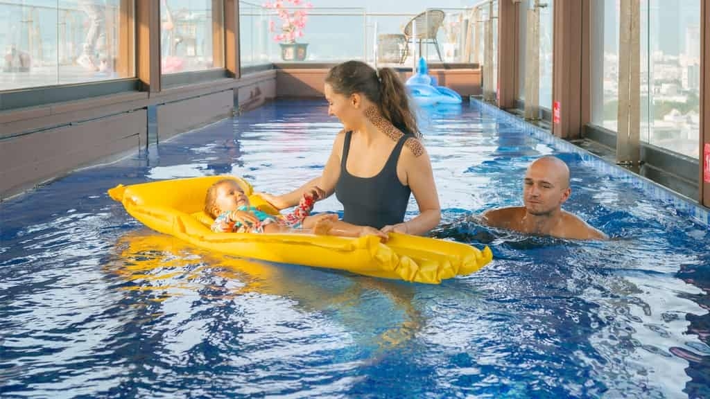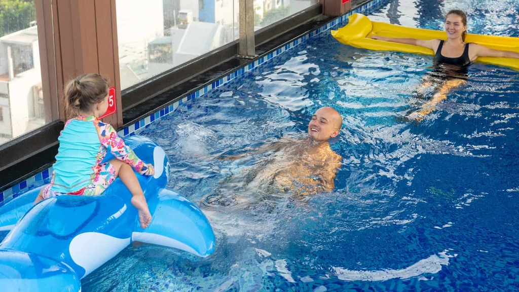 - Trẻ em cần có người lớn đi kèm khi vào hồ bơi để đảm bảo an toàn.