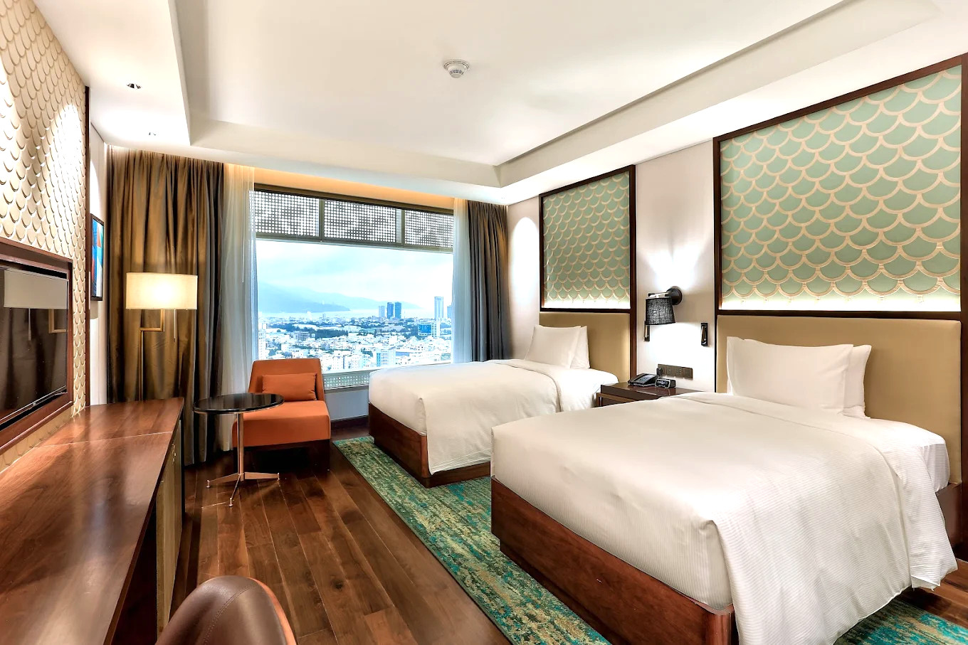 Hilton Đà Nẵng là một trong những lựa chọn hàng đầu được du khách yêu thích mỗi khi ghé thăm thành phố biển xinh đẹp. Tọa lạc ngay bên bờ sông Hàn, khách sạn sở hữu vị trí đắc địa với tầm nhìn lý tưởng bao quát góc nhìn ngắm pháo hoa rực rỡ. Từ ban công phòng nghỉ, bạn có thể chiêm ngưỡng những màn tung hoa rợp trời.