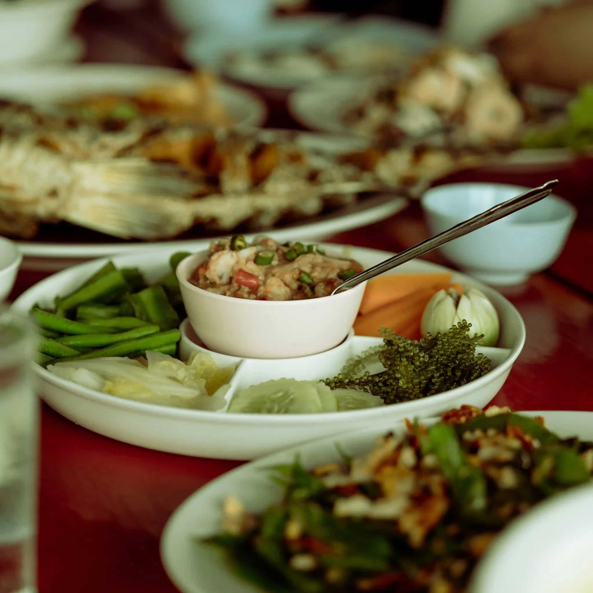 - Di chuyển bằng xuồng máy đến nhà hàng Khru Vit Seafood Raft, thưởng thức các món hải sản tươi ngon, đặc biệt là các món nướng, gỏi hải sản và lẩu hải sản.