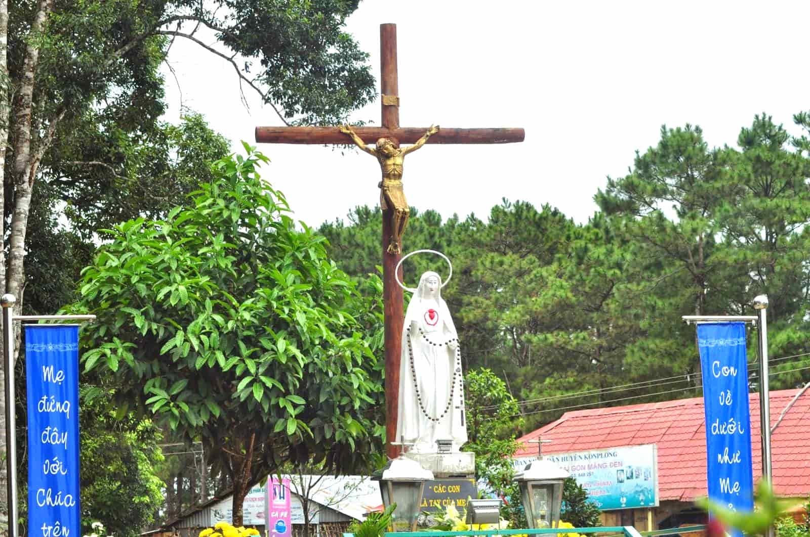 - 08h20 - 11h30: Tham quan tiếp các điểm tại Măng Đen: Vườn hoa Thanh niên, Tượng Đức Mẹ Măng Đen, Vườn dâu và cà chua Hùng Ly.