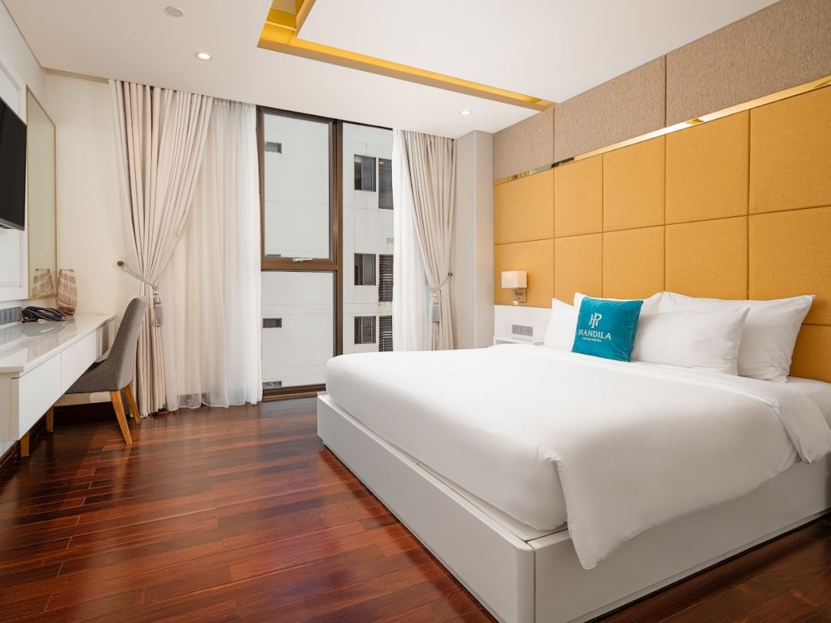Mandila Beach Hotel mang phong cách kiến trúc hiện đại, cao cấp, hoàn toàn mới xây dựng từ 2017, sở hữu 130 phòng và 2 căn hộ dạng cao cấp với view biển rộng mở. Không gian rooftop còn có Halo Bar và Sky Lounge, tạo góc chill lý tưởng để nhâm nhi cocktail ngắm thành phố và đại dương bao la.