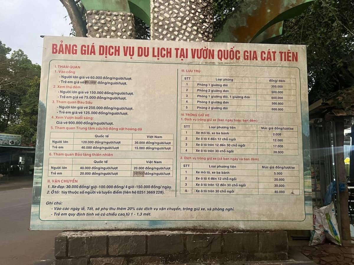 2. Giá vé tham quan Nam Cát Tiên và các dịch vụ cơ bản