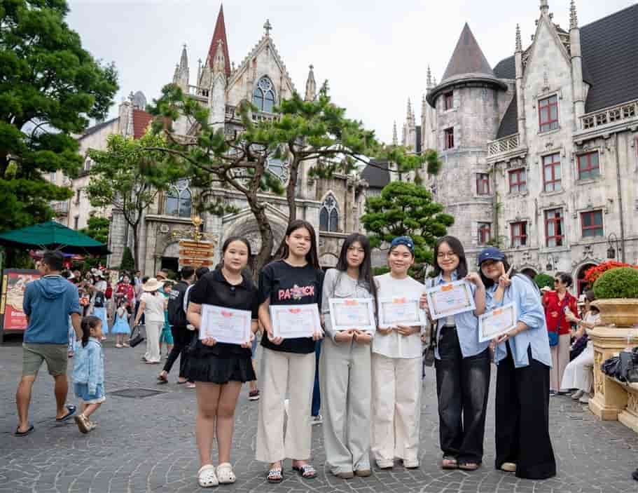 Hình ảnh học sinh đến Bà Nà Hills với giấy khen