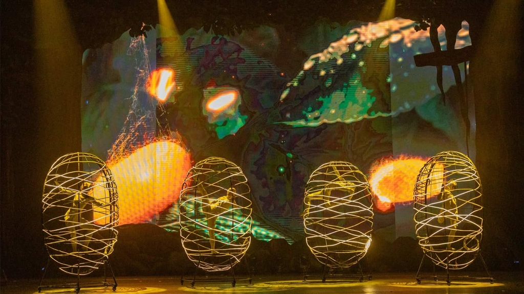 1. Chương trình biểu diễn nghệ thuật đương đại sử dụng nhiều chất liệu nghệ thuật như múa, âm nhạc, xiếc, kịch và tương tác cùng khán giả
